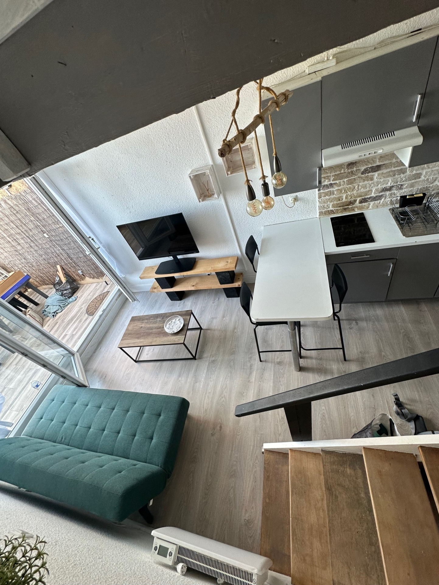 Loin de toute commodité, au calme, dans une résidence sécurisée et prisée du mont des Oiseaux, loue studio meublé en duplex de 26m2 avec coin nuit et climatisation.